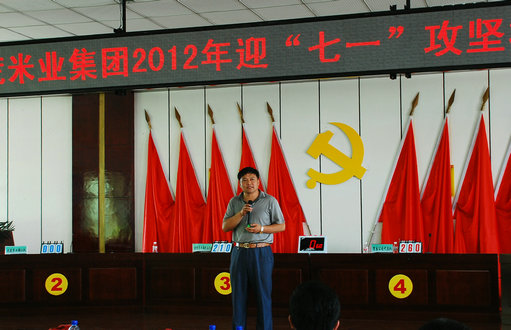 6月29日,北方邊陲小鎮(zhèn)前進農(nóng)場機關(guān)會議室內(nèi),一輪激烈的知識競賽正在進行。北大荒米業(yè)總部與43個經(jīng)營單位經(jīng)過初賽、選拔賽選出的18員工,分成6個代表隊正在臺上進行著激烈的對壘角逐。