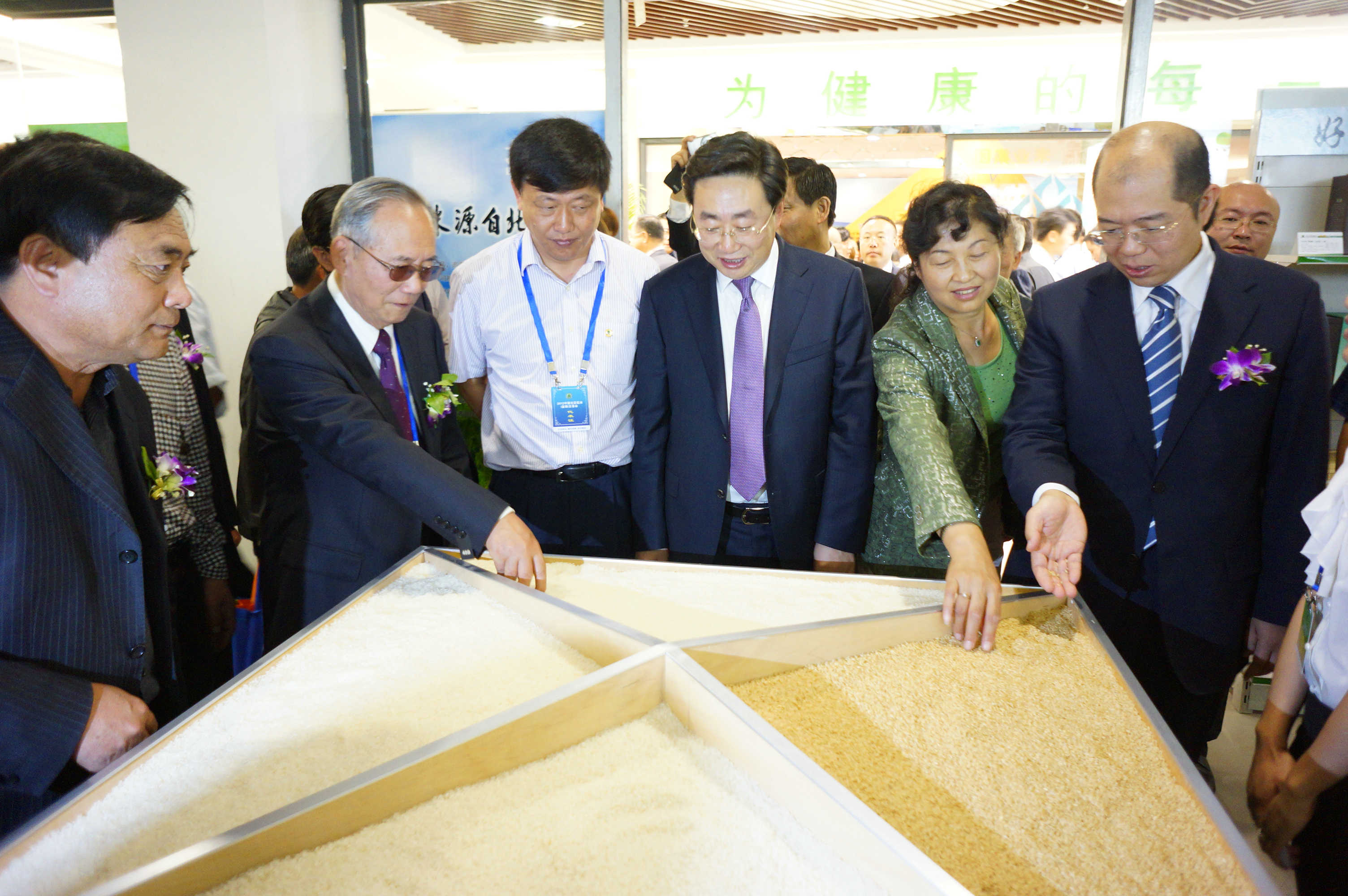 圖1:9月19日上午,中國糧食行業(yè)協(xié)會會長白美清(左二)在參觀展區(qū)后表示:北大荒米業(yè)集團這幾年發(fā)展快,從基地建設、品牌提升和產能集聚等方面有目共睹。希望企業(yè)能通過產業(yè)創(chuàng)新和市場融合,在稻米行業(yè)內發(fā)揮出更大的引領和拉動作用。