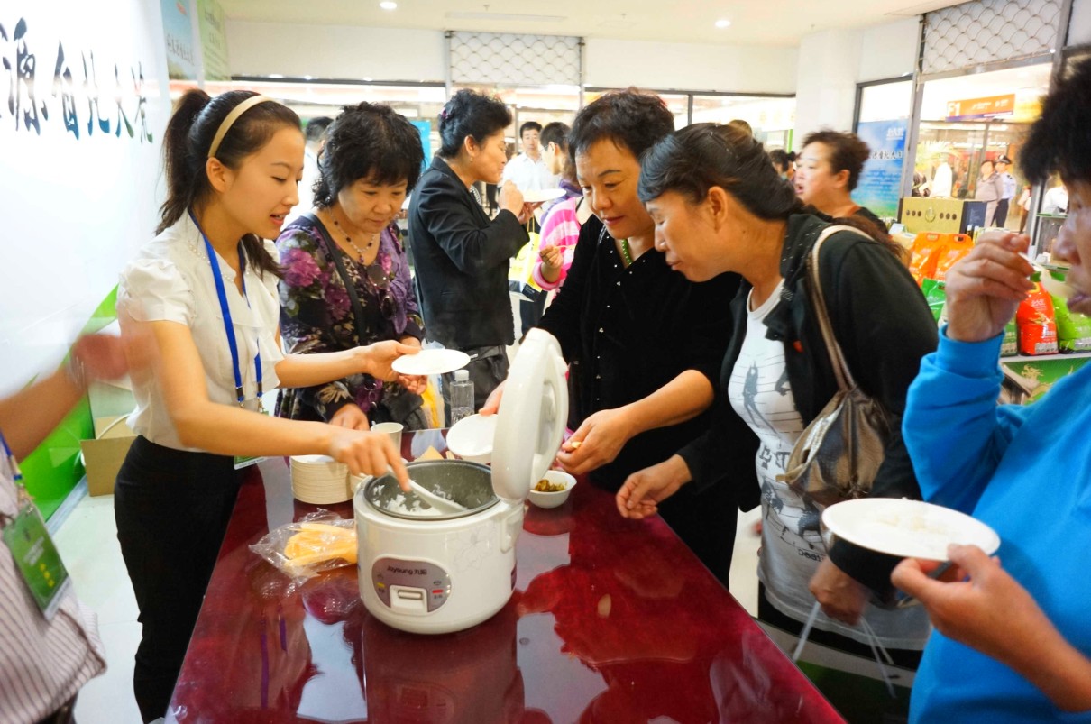 圖3:9月19日,在2012中國優(yōu)質稻米(盤錦)交易會上,在北大荒鮮香米的試吃環(huán)節(jié),當香噴噴的米飯一出爐,就被前來試吃的人們“一搶而空”。