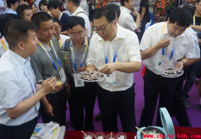 本次展會由米業(yè)集團(tuán)吉林公司承辦,在開幕的第一天,米業(yè)展區(qū)儼然成為一間百姓家中的廚房,吉林公司副總經(jīng)理謝連云親自用北大荒自產(chǎn)的秋田小町大米做成壽司,以供前來參觀的國內(nèi)外消費者品鑒。同時在吉林公司總經(jīng)理孟凡軍帶領(lǐng)下,推出的特色產(chǎn)品還有北大荒集團(tuán)新品大米面條,現(xiàn)場冷水下鍋,出鍋后分別做成冷面和拌面,深受廣大中外參展人員的喜愛。營銷部部長李丹峰也一直忙碌在展會現(xiàn)場洽談銷售。