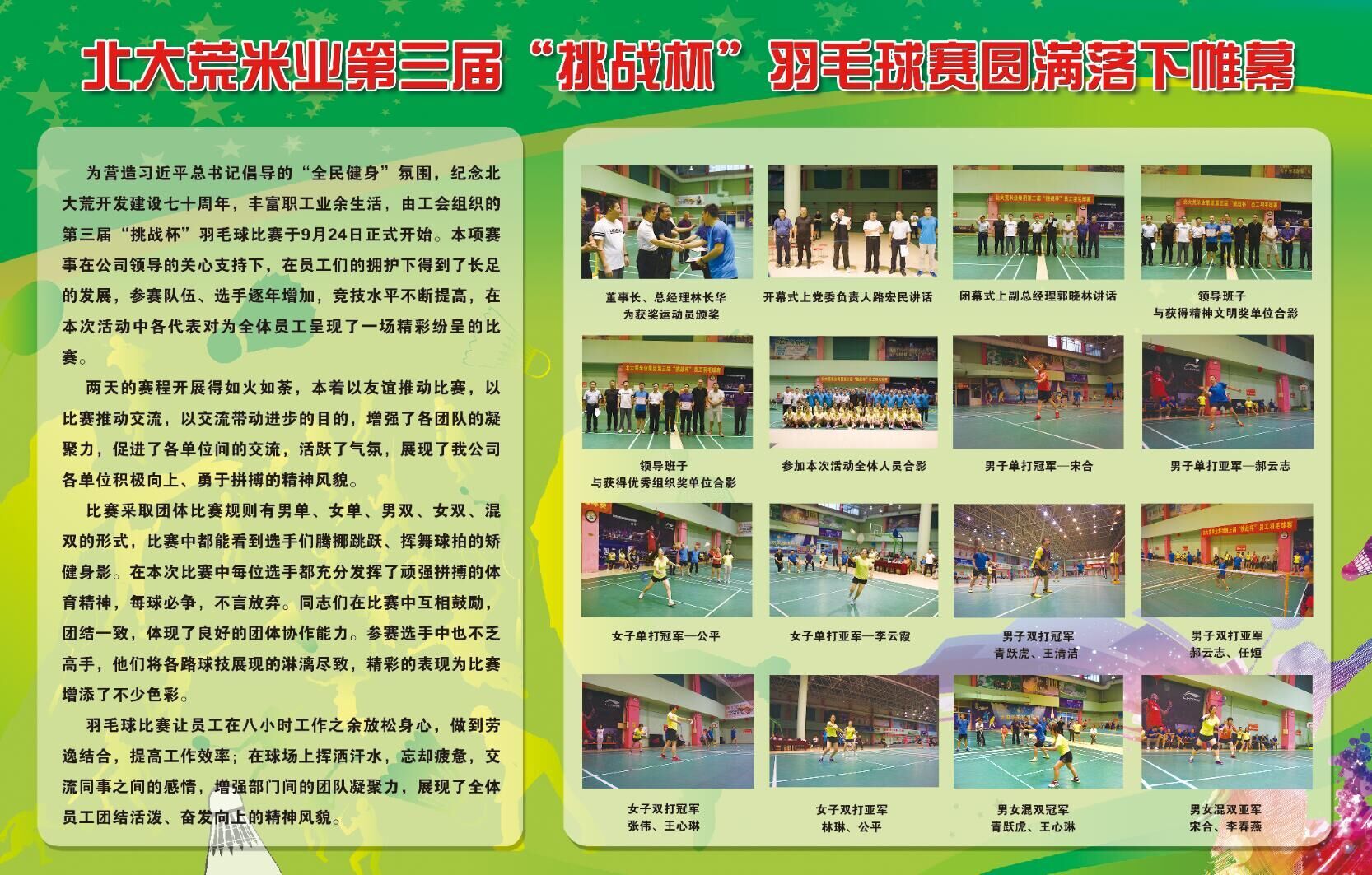 北大荒米業(yè)第三屆“挑戰(zhàn)杯”羽毛球賽圓滿落下帷幕
