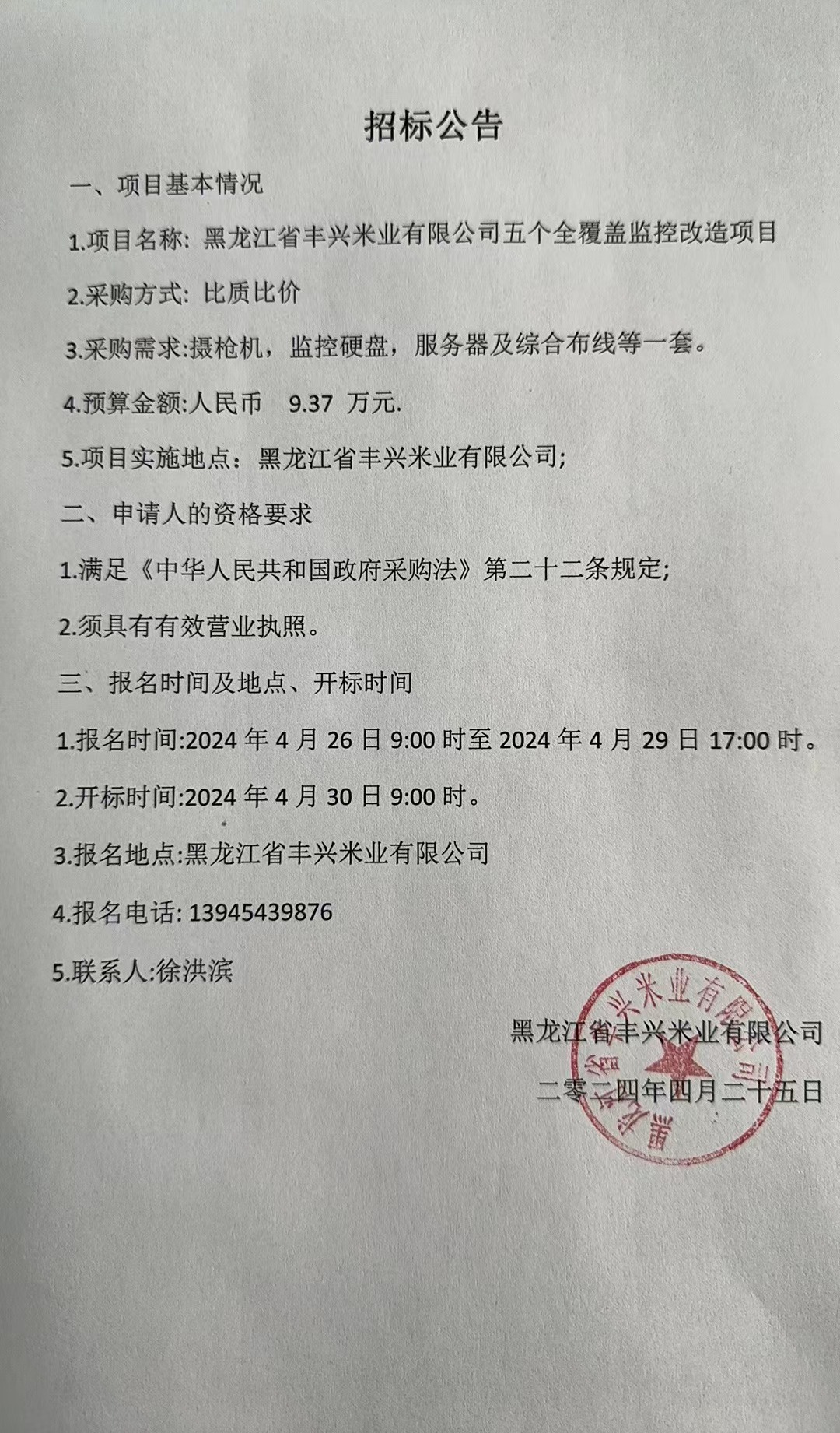 黑龍江省豐興公司五個全覆蓋監(jiān)控改造項目招標公告