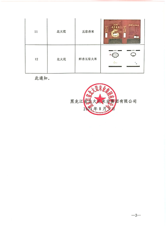 關(guān)于停止使用包裝標(biāo)注“五常**米執(zhí)行標(biāo)準(zhǔn)GB/T1354”的包裝通知