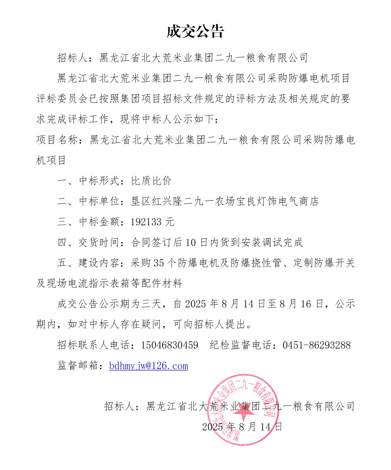 防爆電機項目成交公告