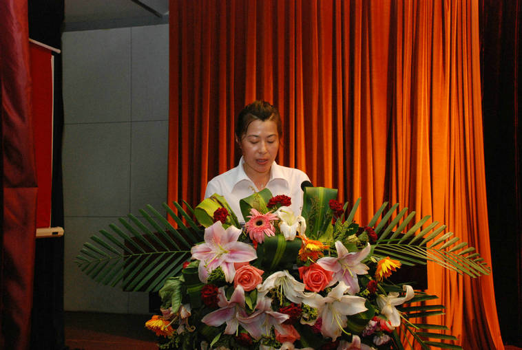 先進(jìn)黨支部代表李桂英做會(huì)議發(fā)言